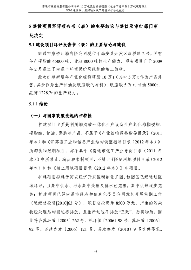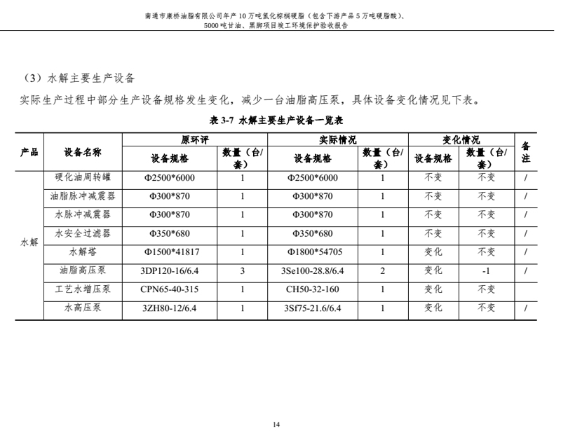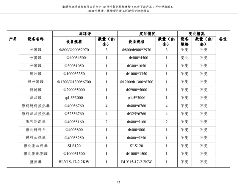 康橋油脂年產(chǎn)10萬噸氫化棕櫚硬脂、5000噸甘油、