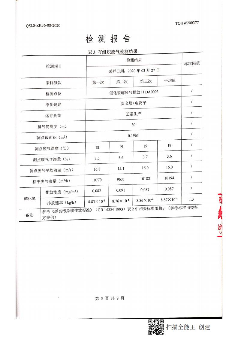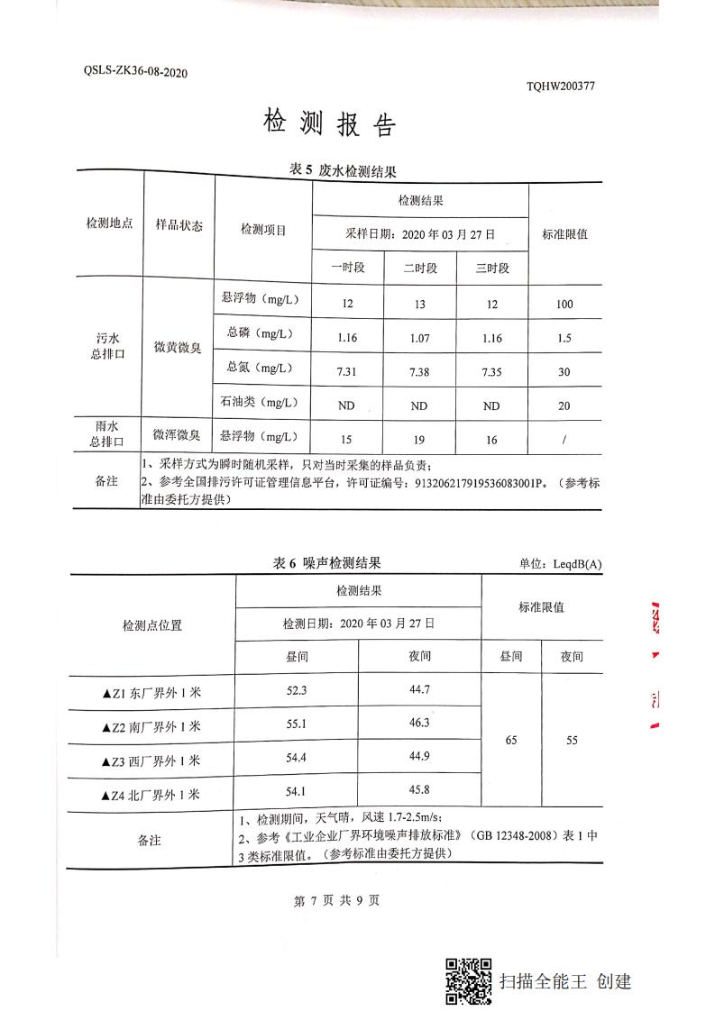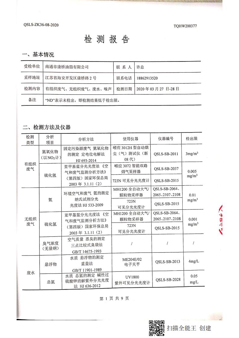 南通市康橋油脂有限公司3月份環(huán)境檢測報告