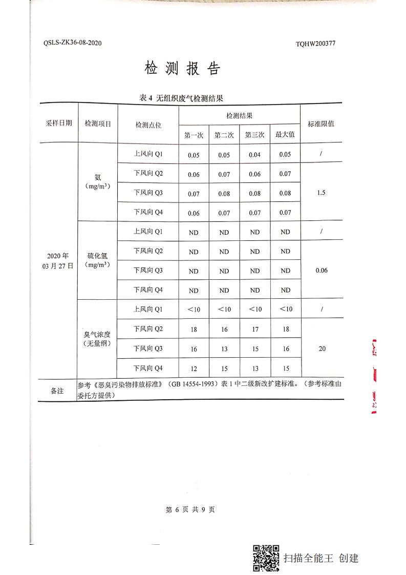 南通市康橋油脂有限公司4月份環(huán)境檢測報告
